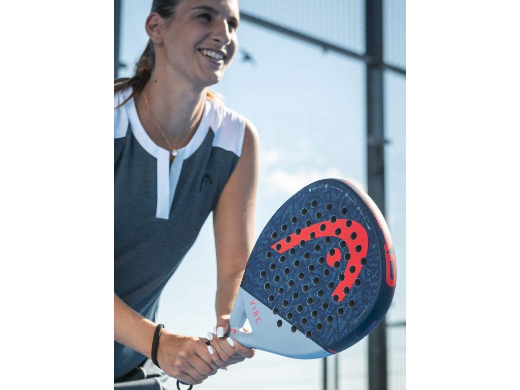 Úderová plocha ze skelných vláken dává pocit jemnosti a větší sweetspot toleruje drobné chyby a zlepší možnosti úderu. VIBE má moderní, hravý design s barevnými odlesky, který zajišťuje, že budete na kurtu vypadat skvěle.