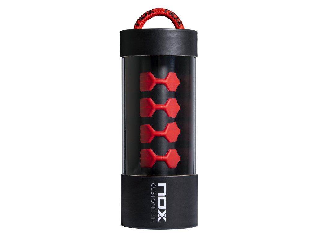 Nox CustomGrip umožňuje hráči plně si přizpůsobit úchop rakety díky silikonovým kroužkům, které se dokonale přizpůsobí rozměrům ruky a vzdálenosti mezi prsty.