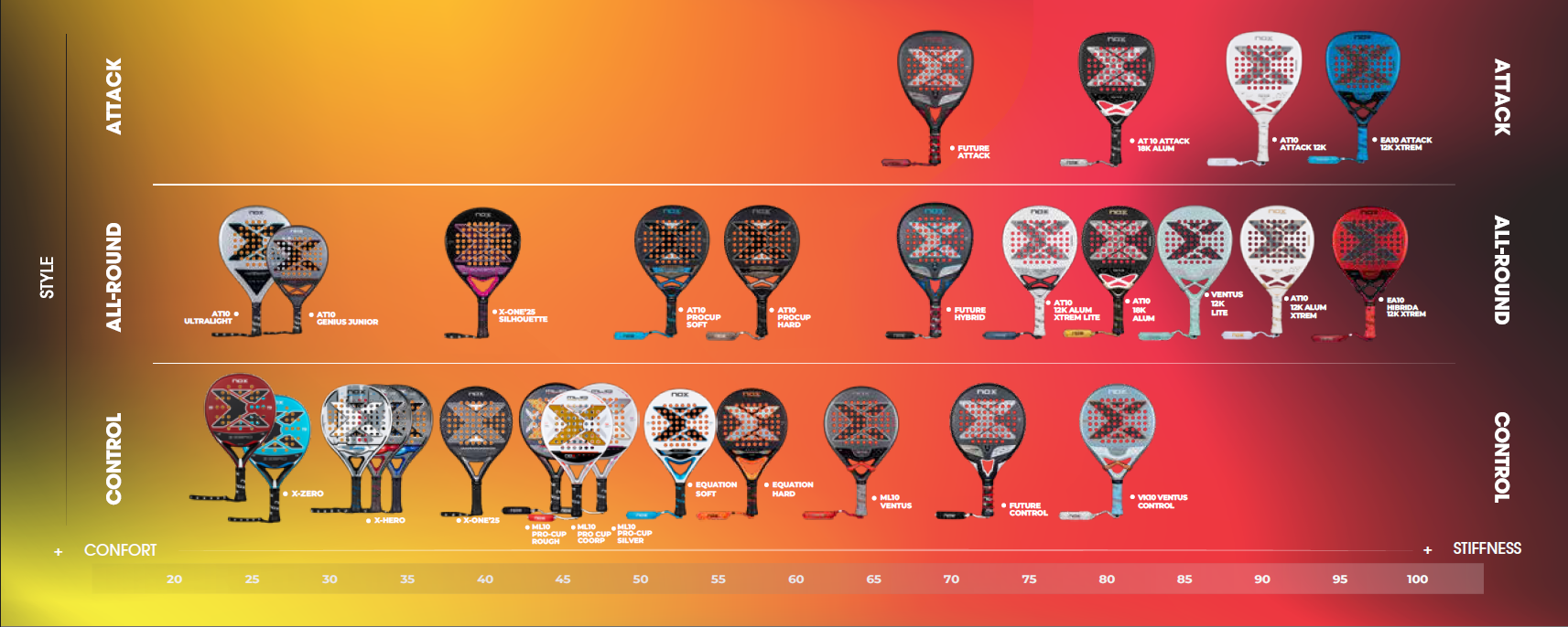 Tvar hlavy: Kapka | Váha: 360-375 g | Materiál jádra: HR3 Black EVA | Materiál povrchu: 12K carbon Alum Xtrem | Povrch: 3D + písek | Skill: Turnajoví hráči