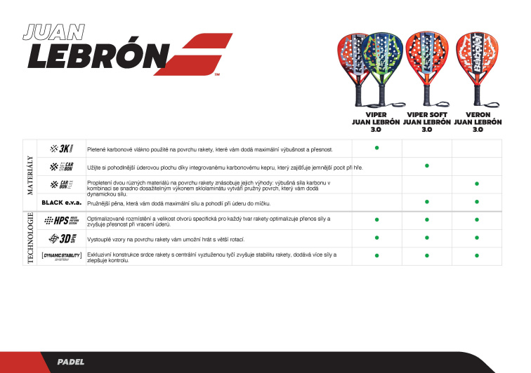 Padelové rakety Babolat představují kombinaci špičkového francouzského designu, ergonomie a herních vlastností. Díky strategické spolupráci s elitními hráči, jako je světová jednička Juan Lebrón, vyvíjí Babolat vybavení, které odpovídá potřebám moderního a agresivního stylu hry.
