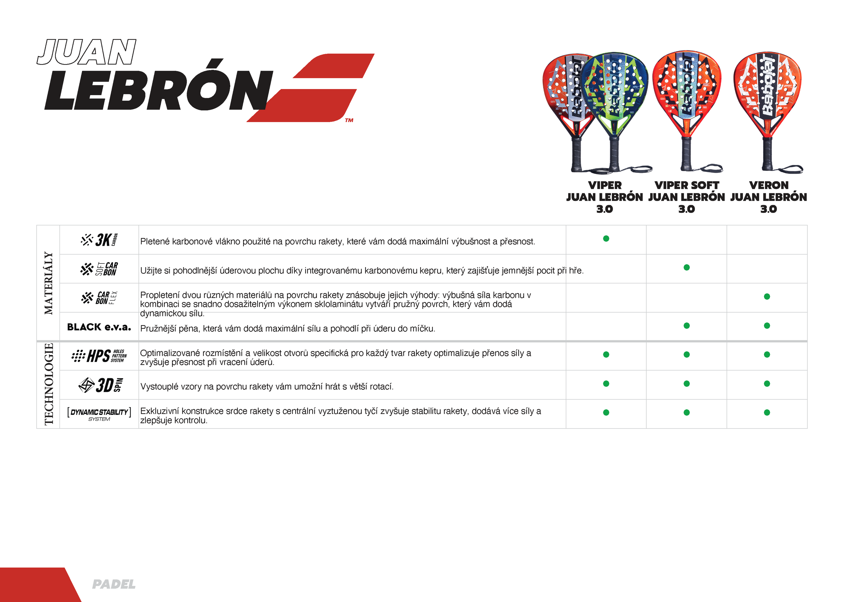 Padelové rakety Babolat představují kombinaci špičkového francouzského designu, ergonomie a herních vlastností. Díky strategické spolupráci s elitními hráči, jako je světová jednička Juan Lebrón, vyvíjí Babolat vybavení, které odpovídá potřebám moderního a agresivního stylu hry.